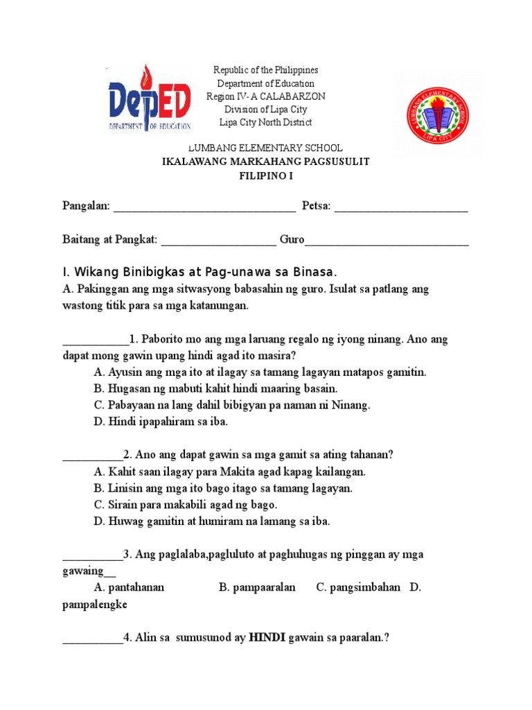 Ginagamit sa pagtatanong upang matukoy ang isang bagay mula sa isang pangkat. Ibenta sa mga dayuhan ang lupa at dalamapasigan upang gawing resort c. Bilang isang bata alin sa mga ito ang maaari mong gawin habang pinapatupad ang enhanced community quarantine.