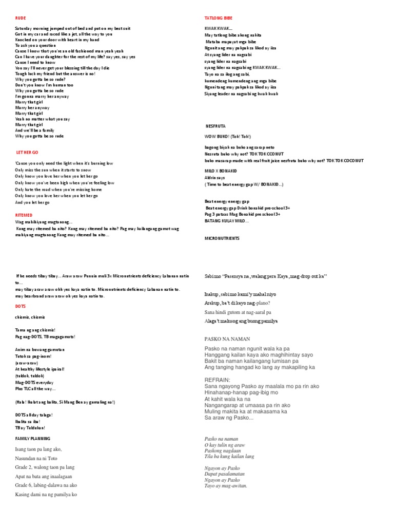 Masakit pala malaman ang katotohananmasakit pa sa mga pasa at sugat sa tuwing binubogbog siyaat higit sa lahat para sa kanya ang babaw lang na dahilan iyon para hindi mahalin ng inabuong buhay niyang initindi itopero sa huli galit pa din ang nasa ang nangingibabaw dito. Kaya bakasyon nag-apply ako sa call center. Others are learning a foreign language so that they can preach to people who speak that language.