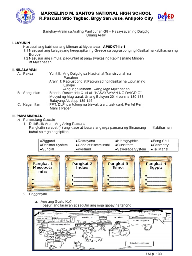 View Ang mga Minoansdocx from AA 1Ang mga Minoans Ayon sa mga arkeologo ang kauna-unahang sibilisasyong Aegean ay nagsimula sa Crete mga 3100 BCE. Lungsod-Estado ng Gresya-Ang tawag sa pamayanan ng Greece ay polis city. 5 CO_Q2_AP-8_Module 1 7.